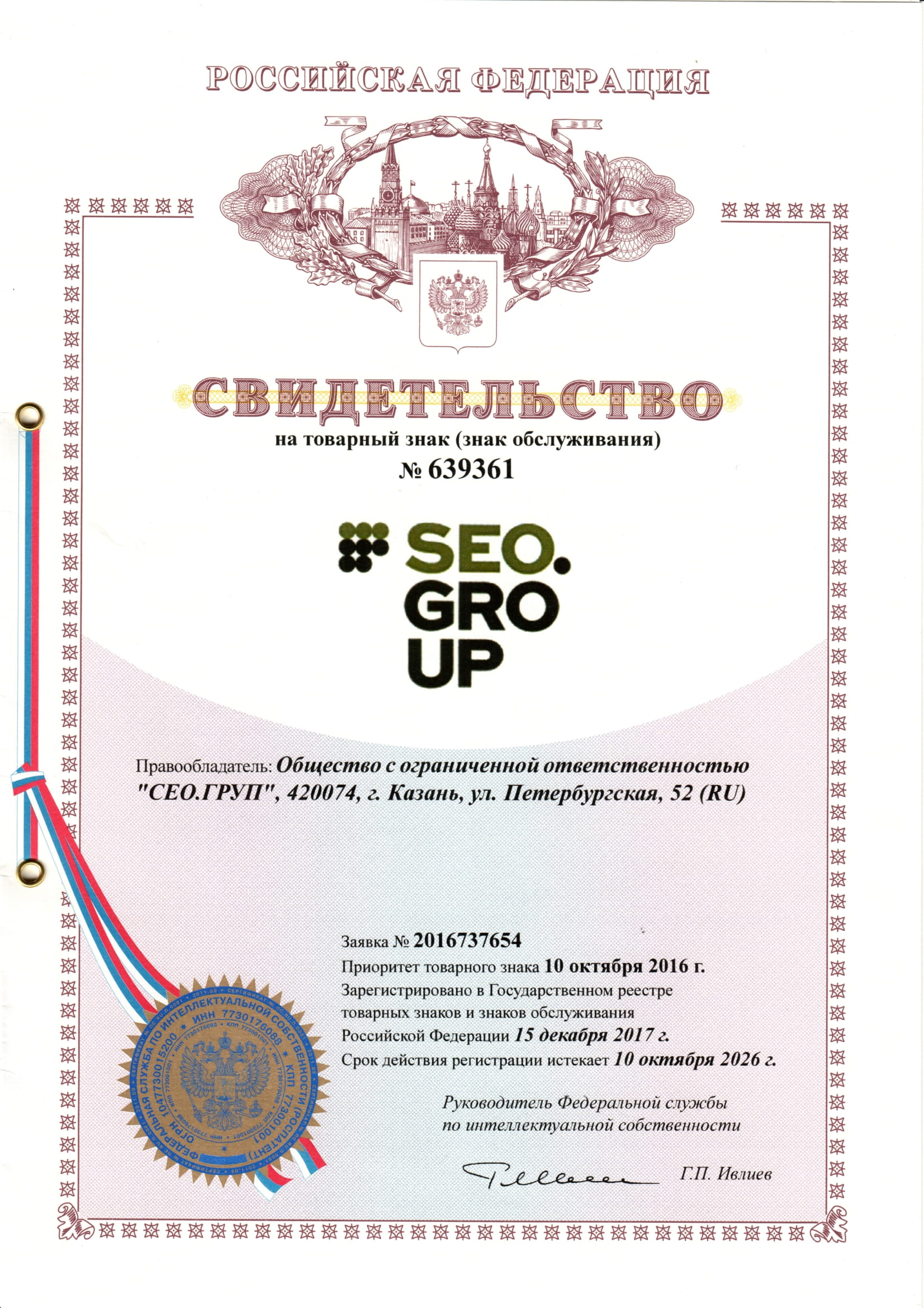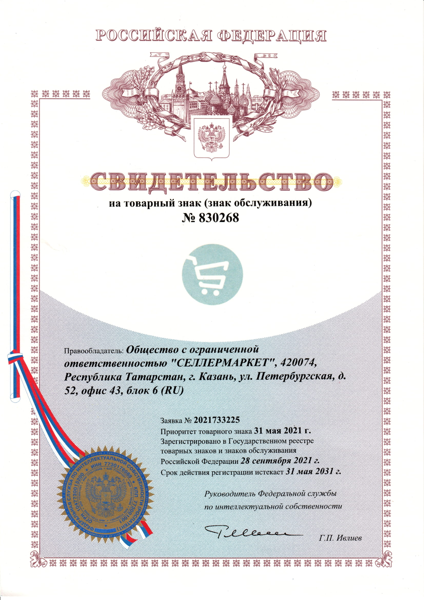 - patent for the trademark (№ 830268 from 28.09.2021)