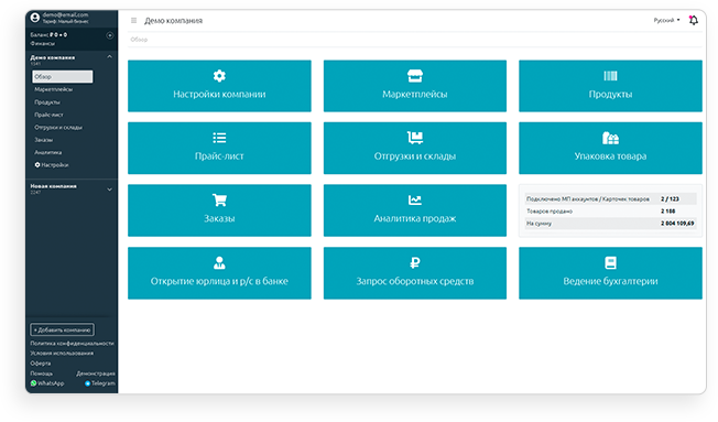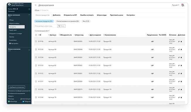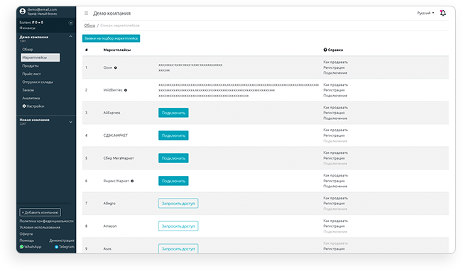 Now it is possible to effectively manage sales and stocks with all nuances of each electronic platform from a single account. It’s simple and convenient!