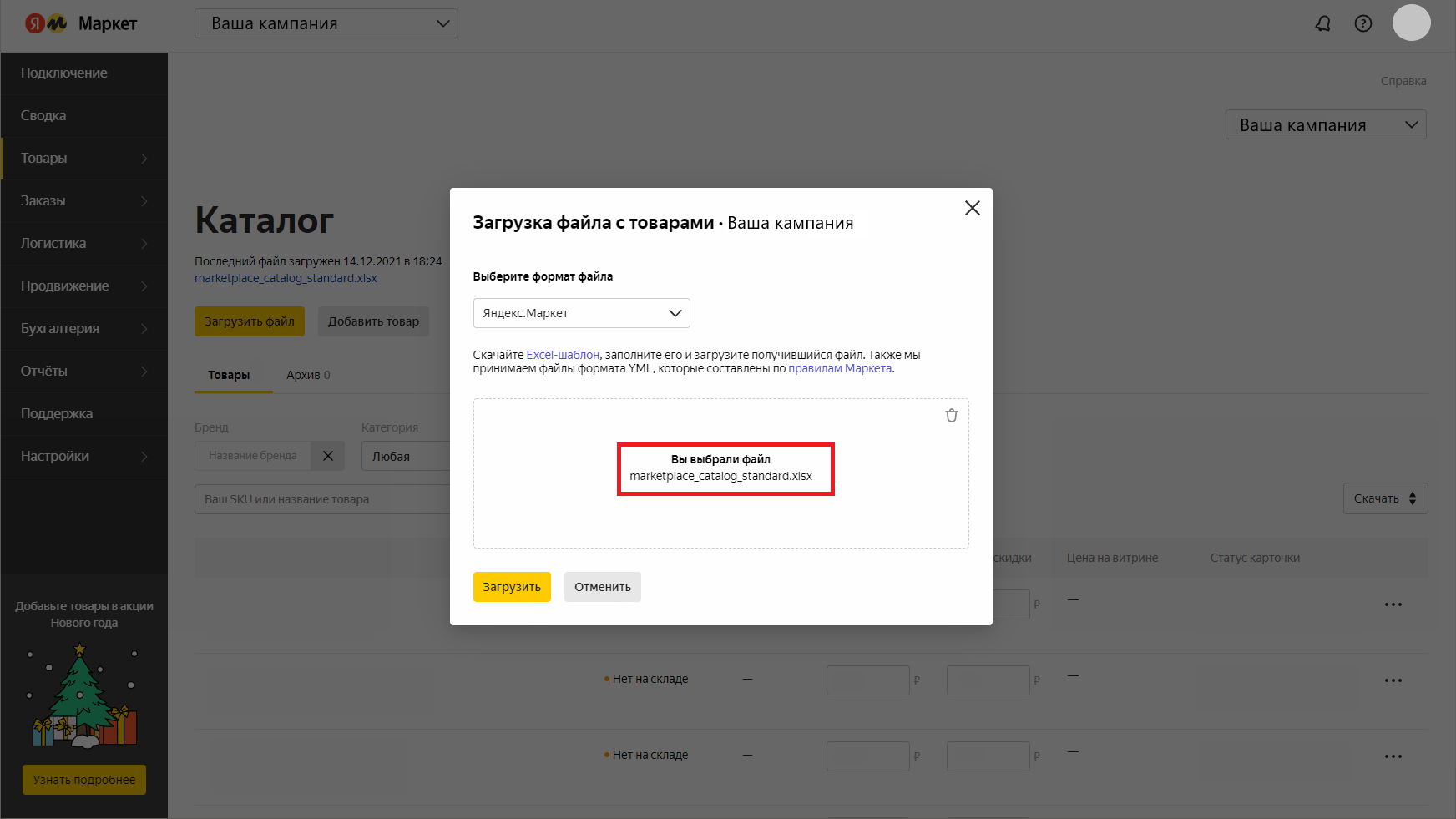 После проверки нажмите Добавить товары. Через некоторое время каталог товаров начнет загружаться в личный кабинет Яндекс.Маркета.