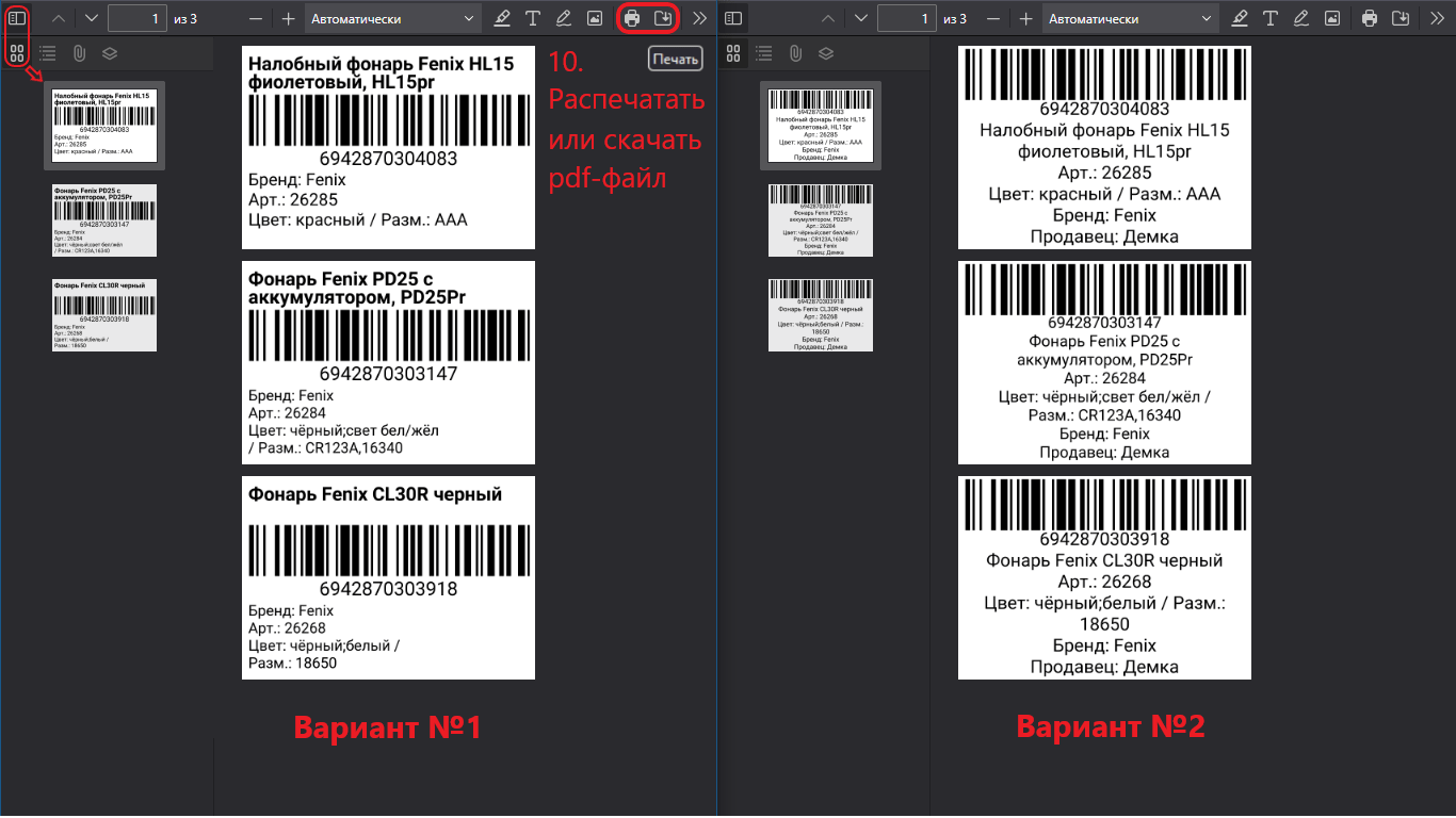 Немного подождите, сформируется и скачается PDF-файл в соответствии с настройками вашего браузера и используемого устройства. Чаще всего скачанный pdf-файл с этикетками открывается в веб-браузере, откуда его можно распечатать или сохранить по кнопке.